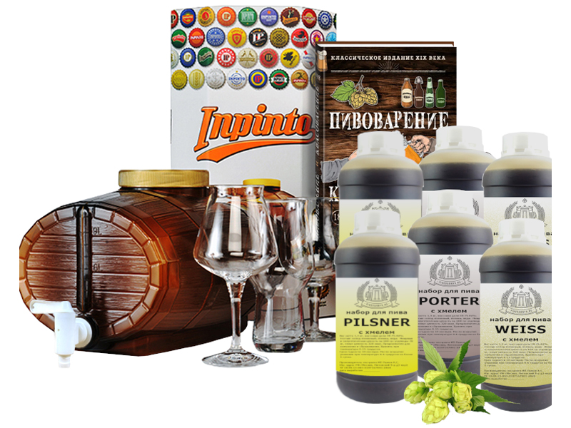 Отличный подарок для настоящих ценителей домашнего пива. В комплекте - самые известные крафтовые сорта пива, профессиональные пивные бокалы для дегустации и настольная книга домашнего пивовара.